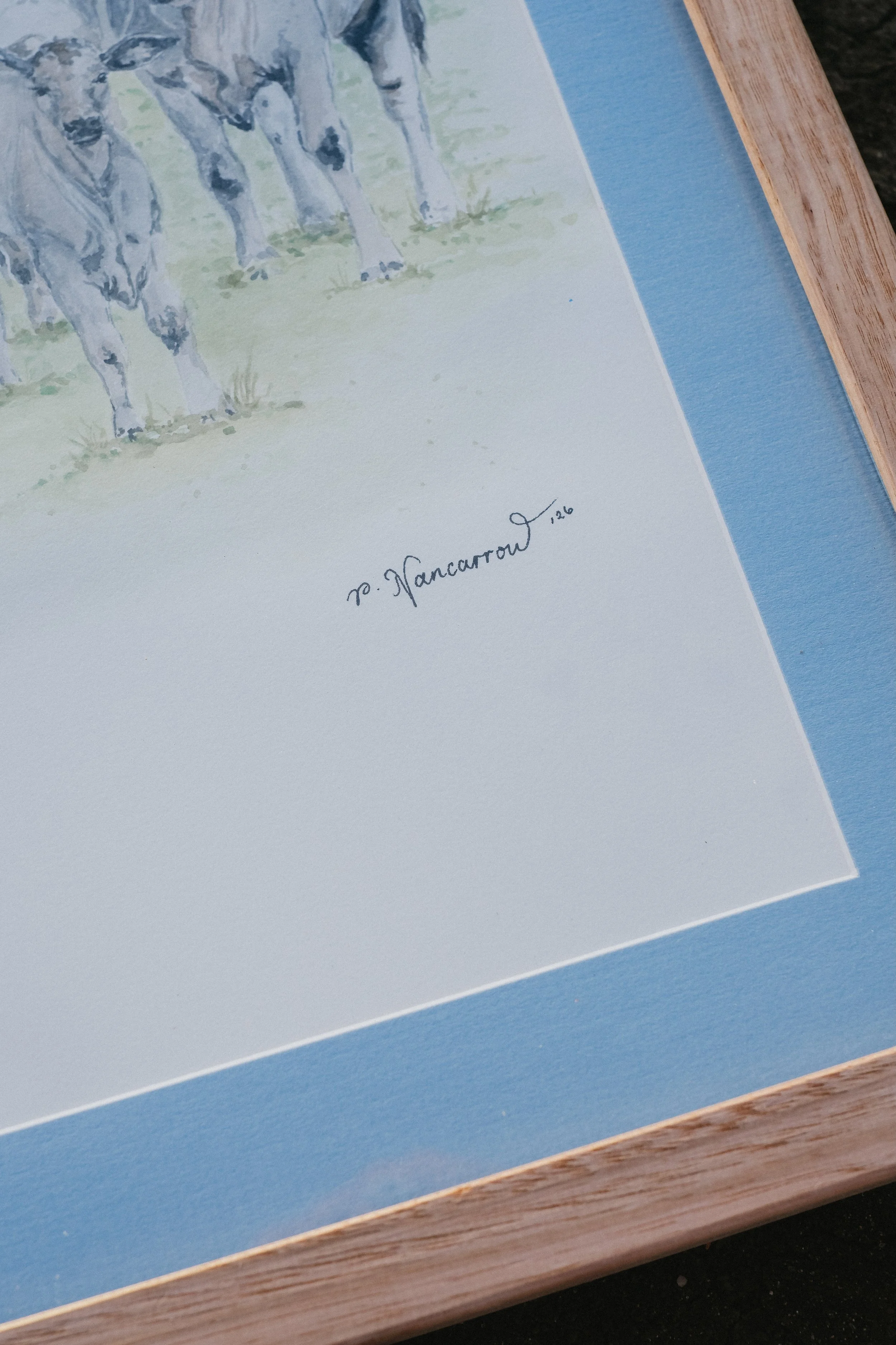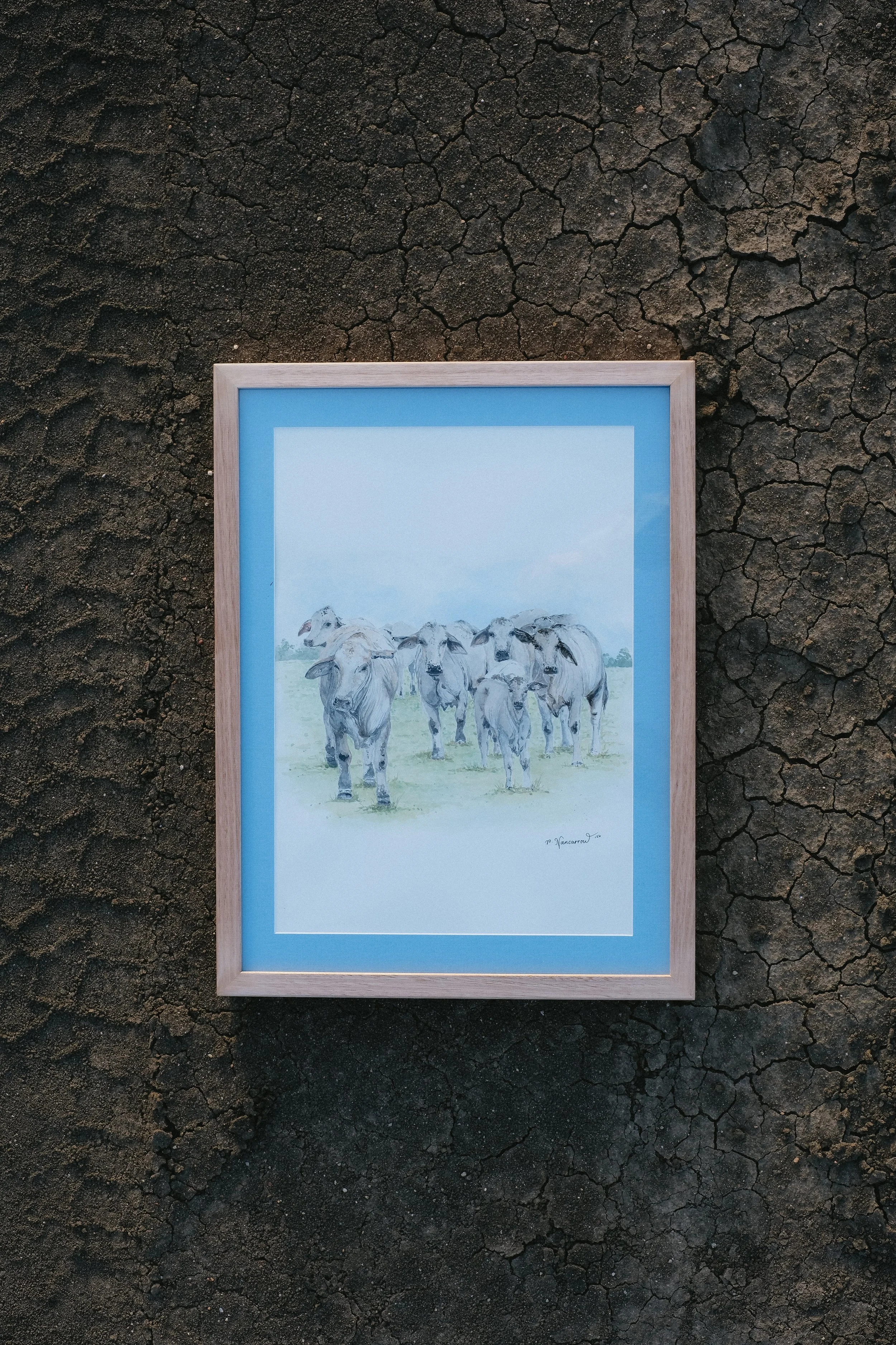Her donated piece, ‘Brahman Daycare’ captures a small, friendly herd of first-timer Brahman heifers and some of their calves, happily unconcerned with who belongs to whom. Drawn by curiosity, the girls step forward to inspect the intruder in their paddock.