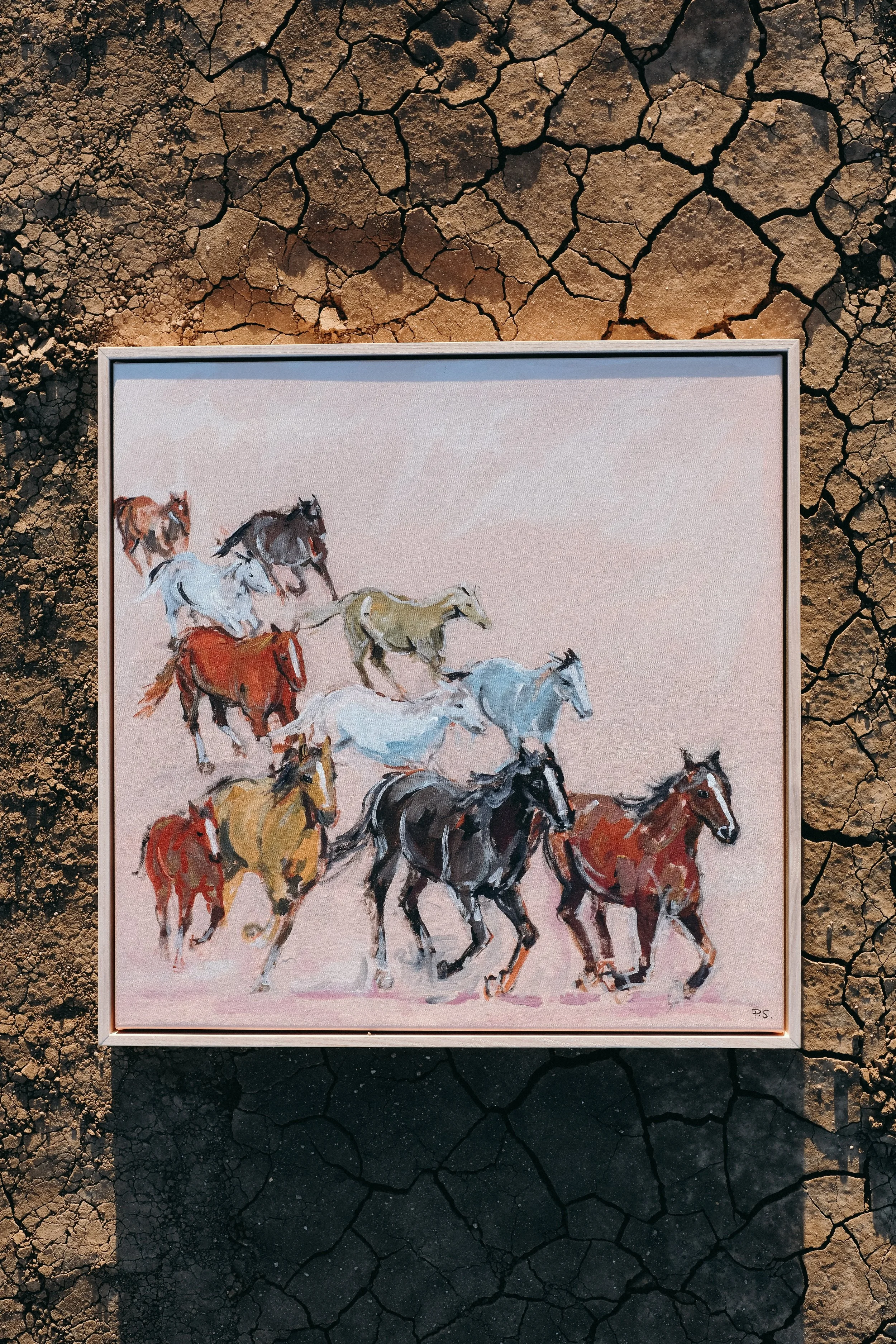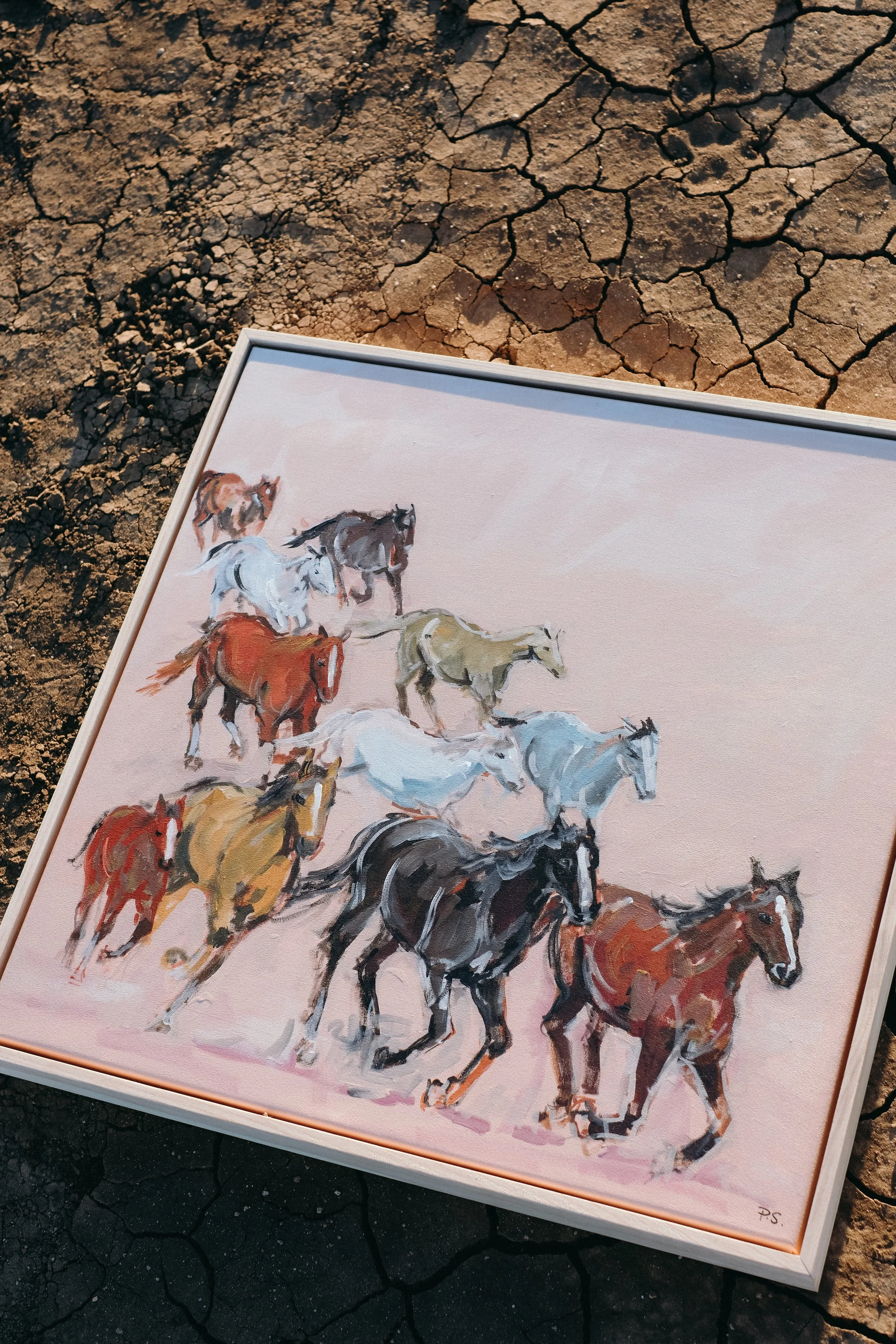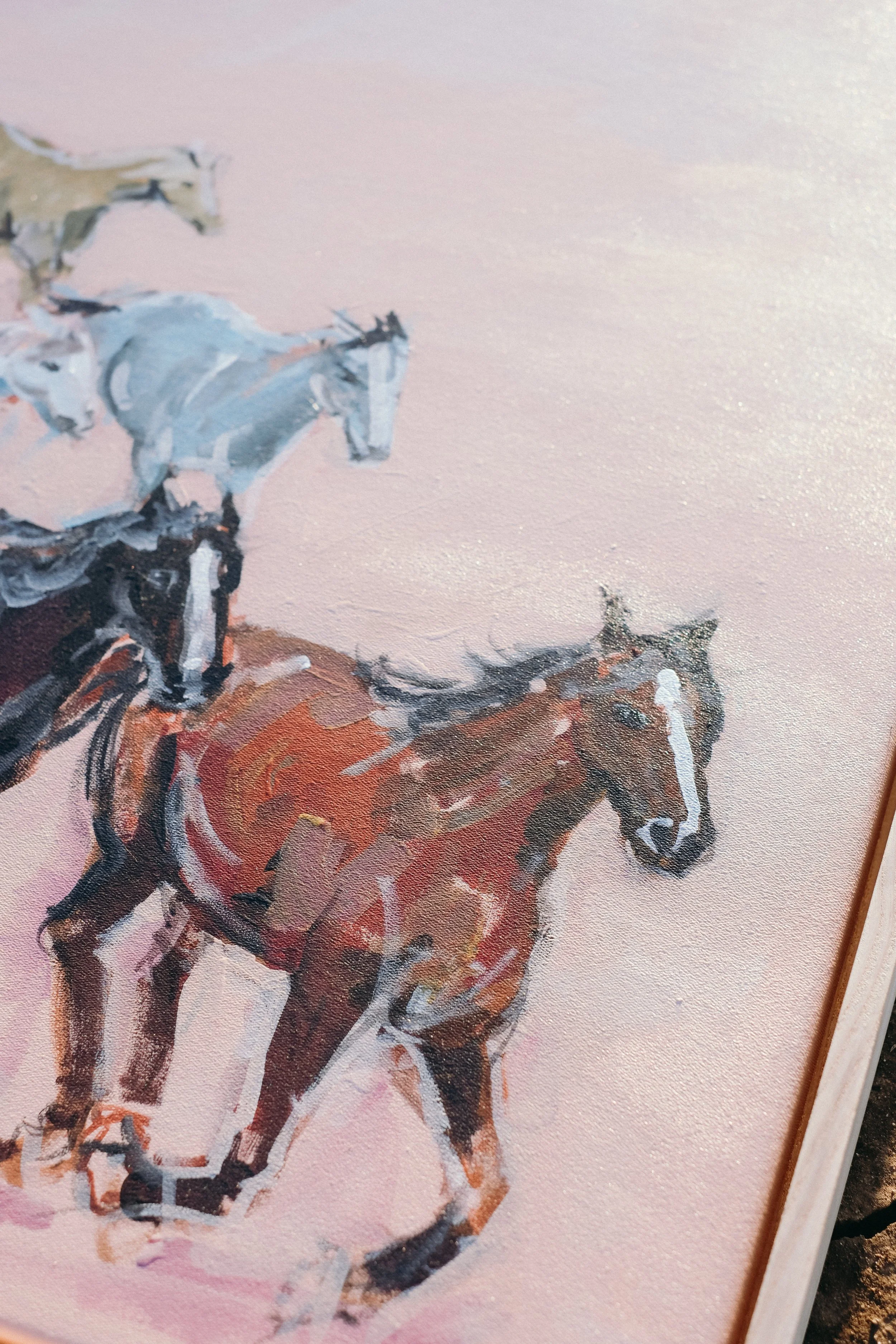 Her donated piece, Let Them Run is inspired by my love for horses and colour. This piece brings fun, energy and my childhood love for all things horses.