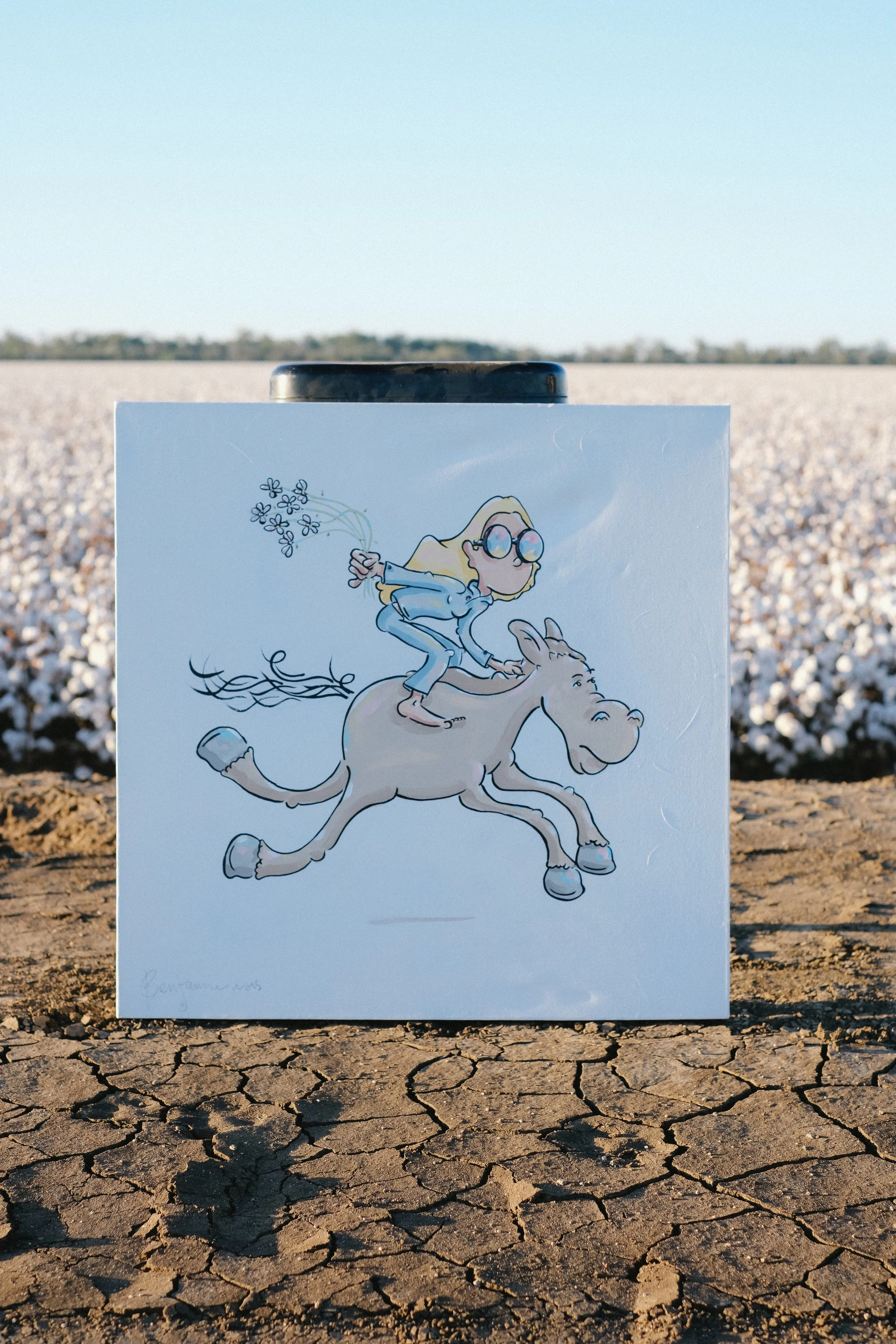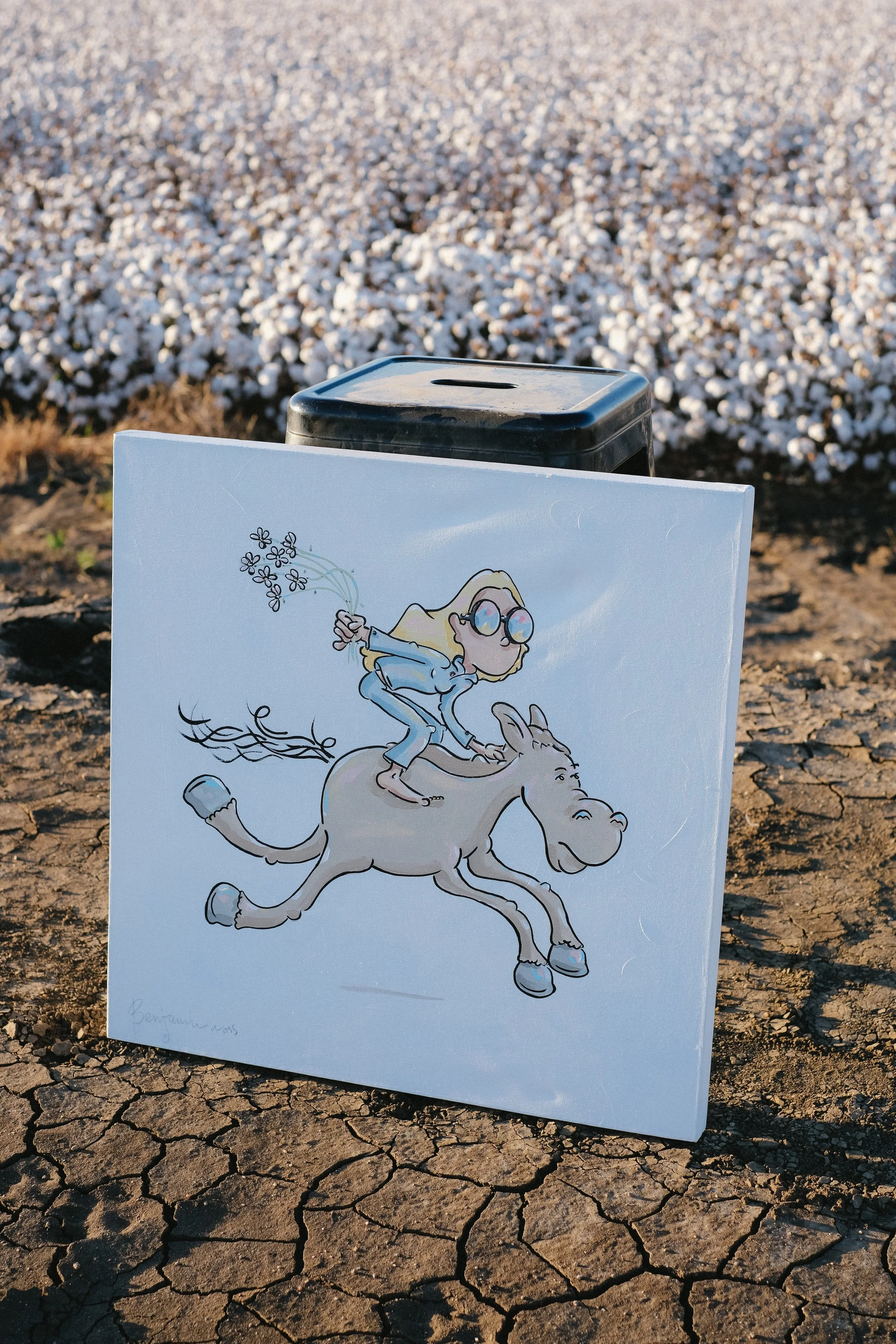 His donated piece ‘Mum’s Paddock’ is dedicated to his mum, and to Fabio. It imagines her riding freely for the first time, moving without restraint. Depicting a strong a sense of release.
