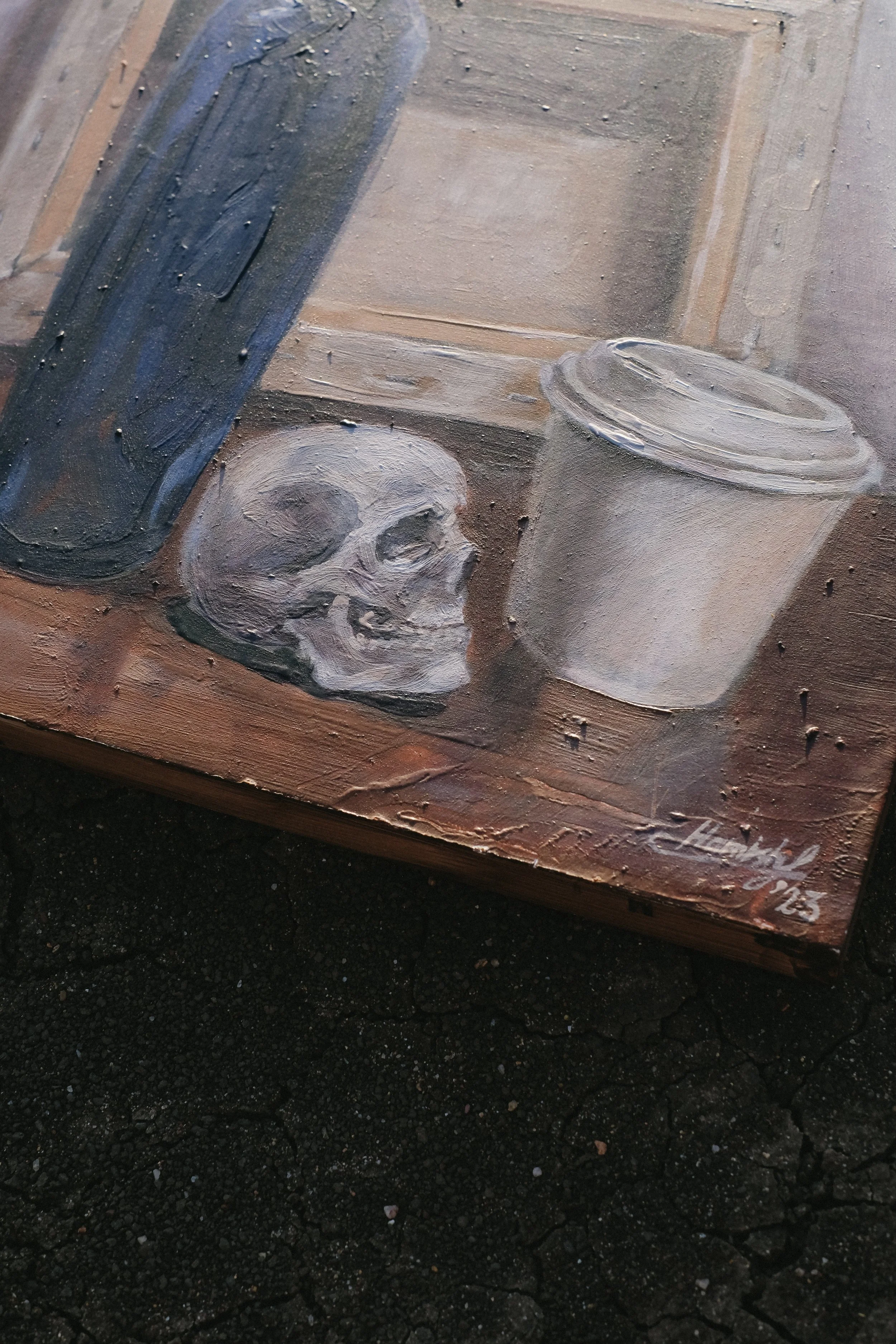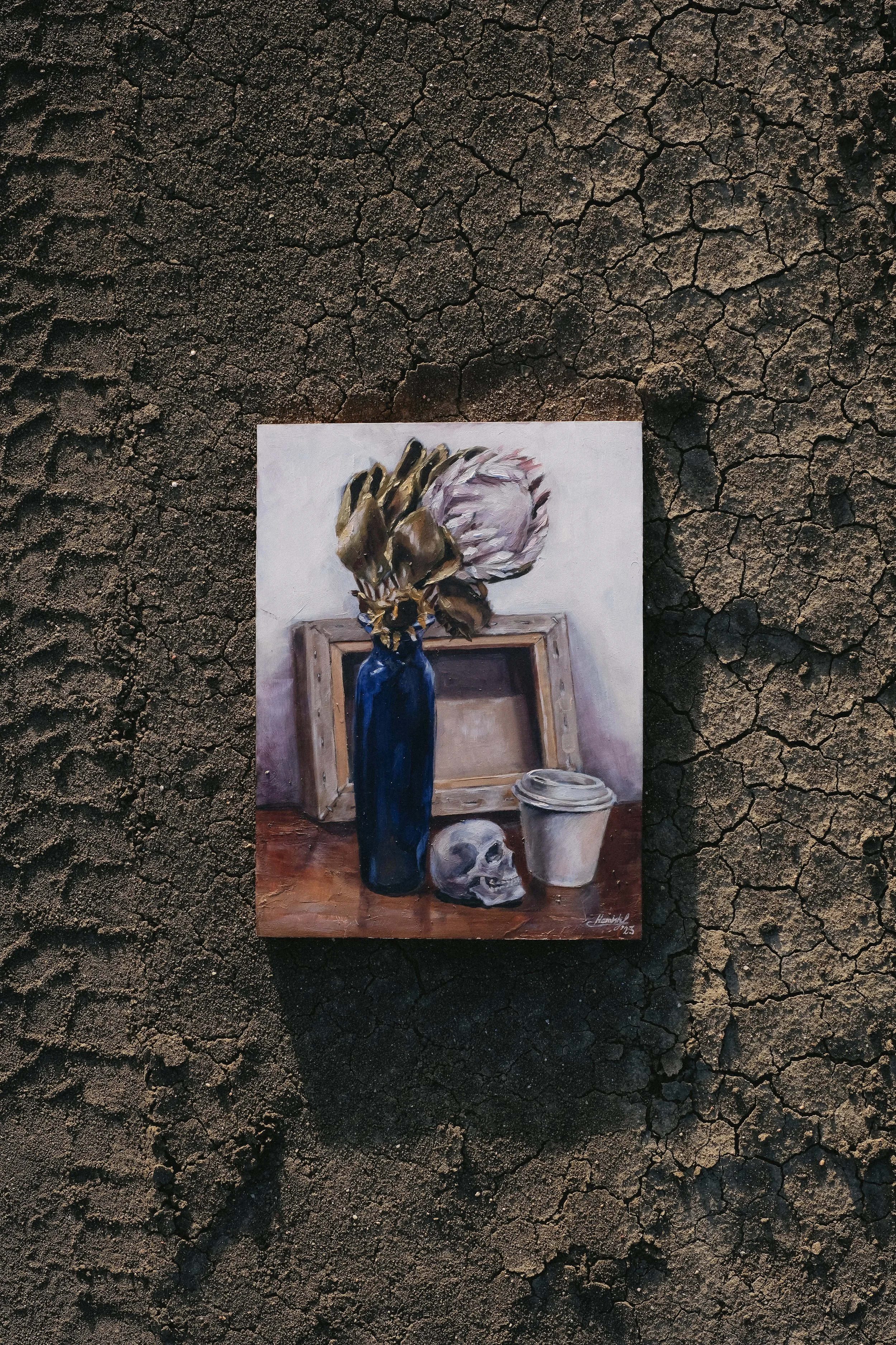 The aesthetic has something of a grunge sensibility. Hamish works exclusively from life, refusing the convenience of reference images or digital tools. Many of the paints he uses are ground by hand from raw pigments, a slow and deliberate process that connects the physical material of the painting directly to the act of observation.