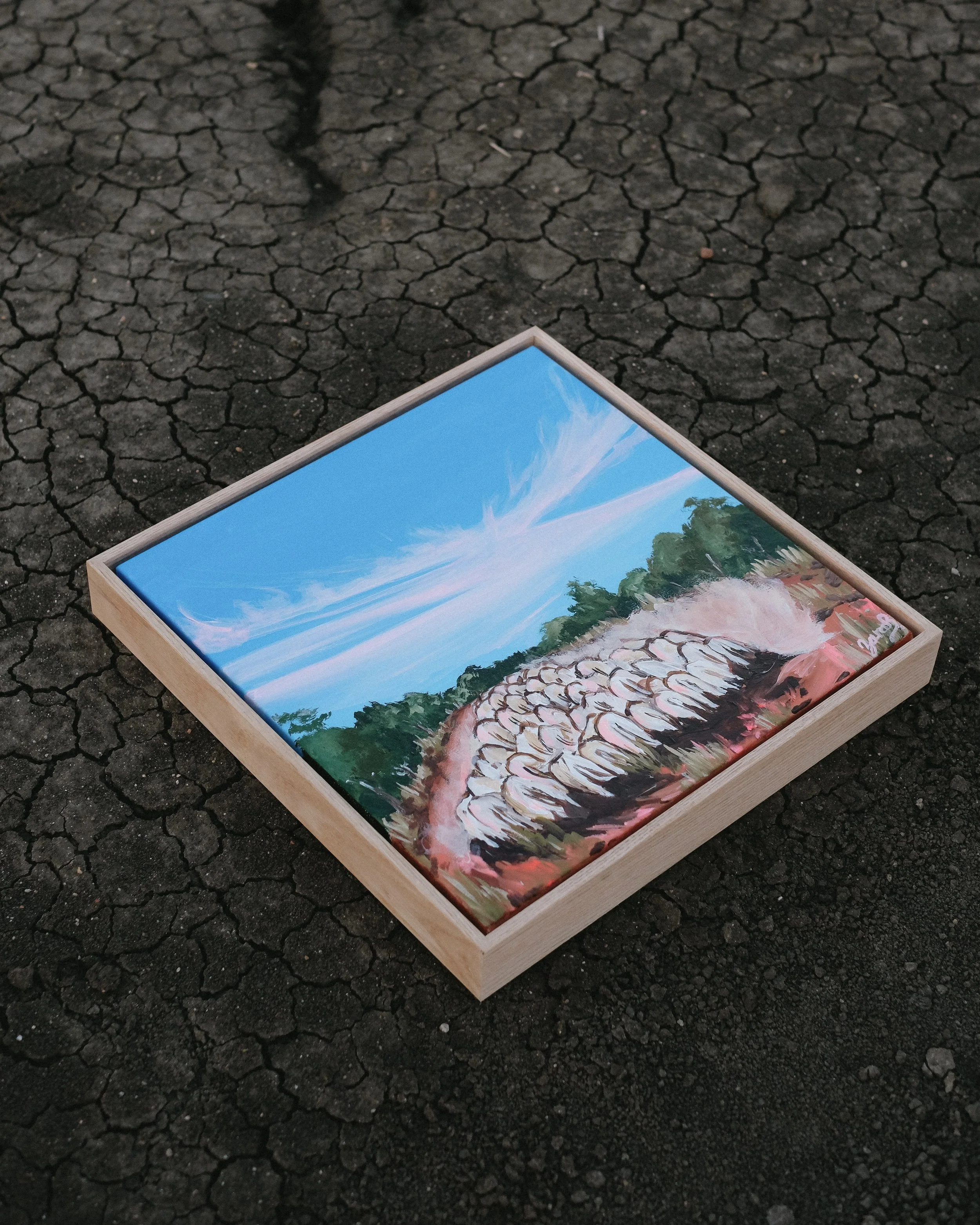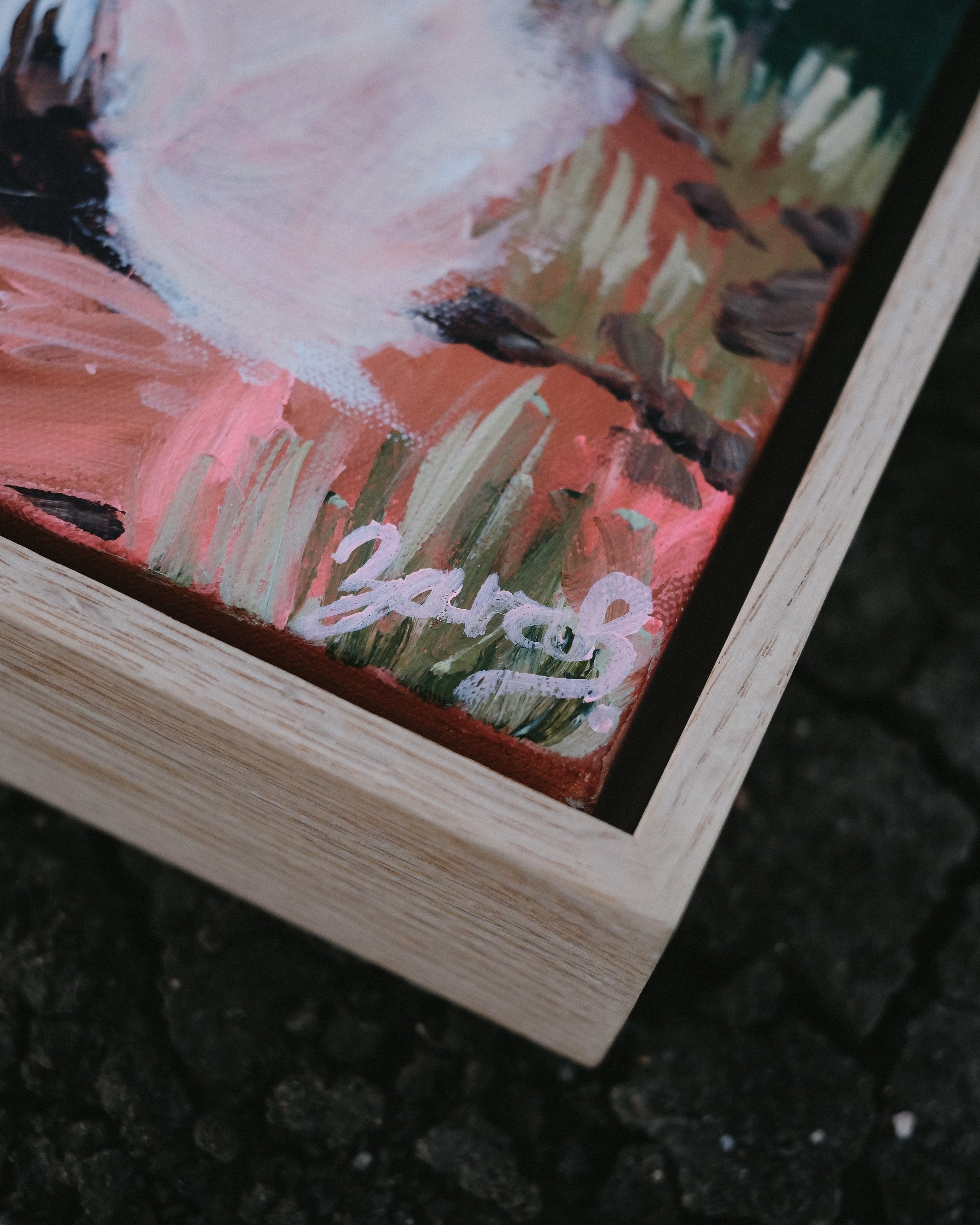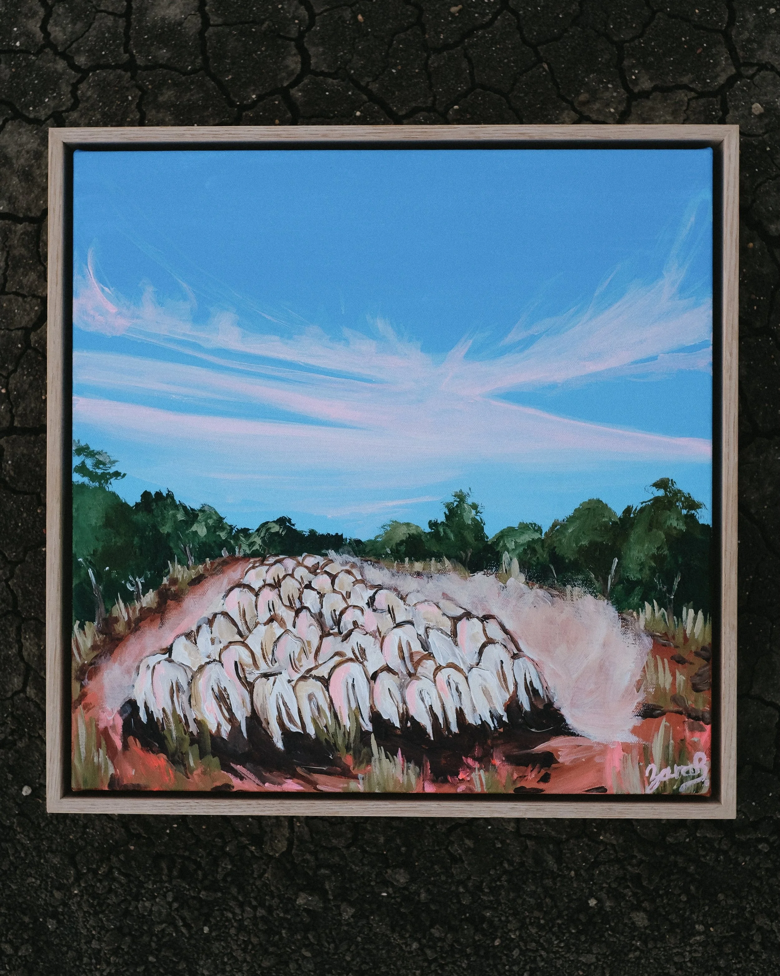 Zarabella’s artistic lineage runs through her family. Inspired by her late grandmother, Paddy Bambling — the founder of ‘Penwhaupell Pottery’ — she continues a legacy of making that honours rural life. Where her grandmother shaped clay, Zarabella works in paint, embracing an impressionistic style that captures the bush in colour and movement.